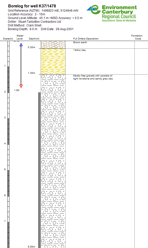 | Driller | Stuart Tarbotton Contractors Ltd | Drawdown at max tested yield | 3 m |