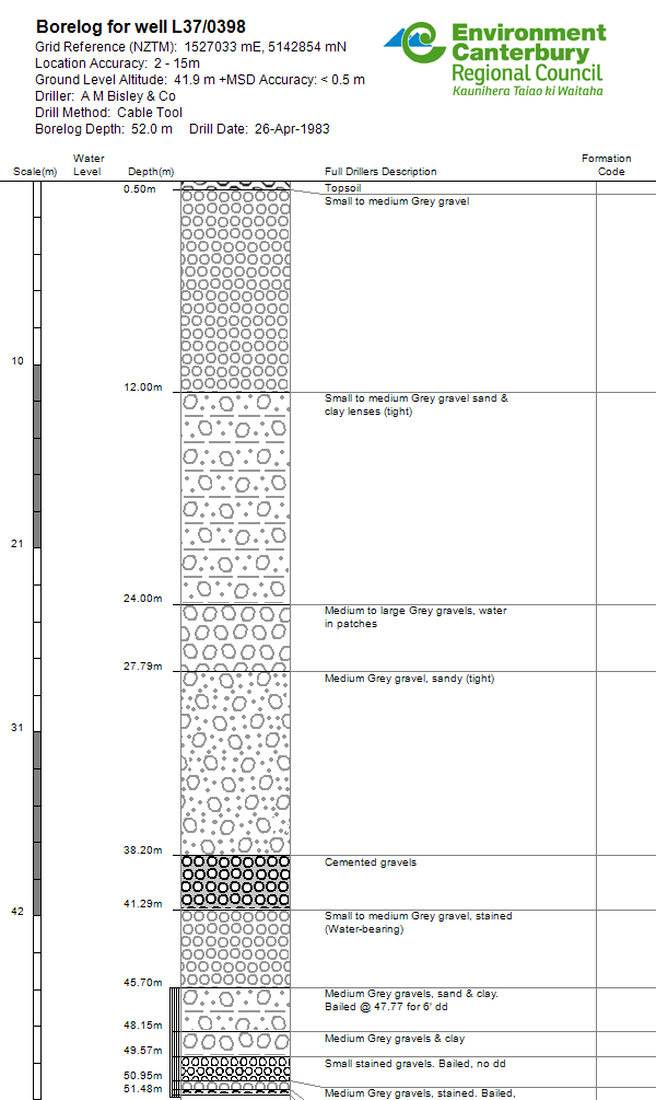 | Driller | A M Bisley & Co | Drawdown at max tested yield | 17 m |