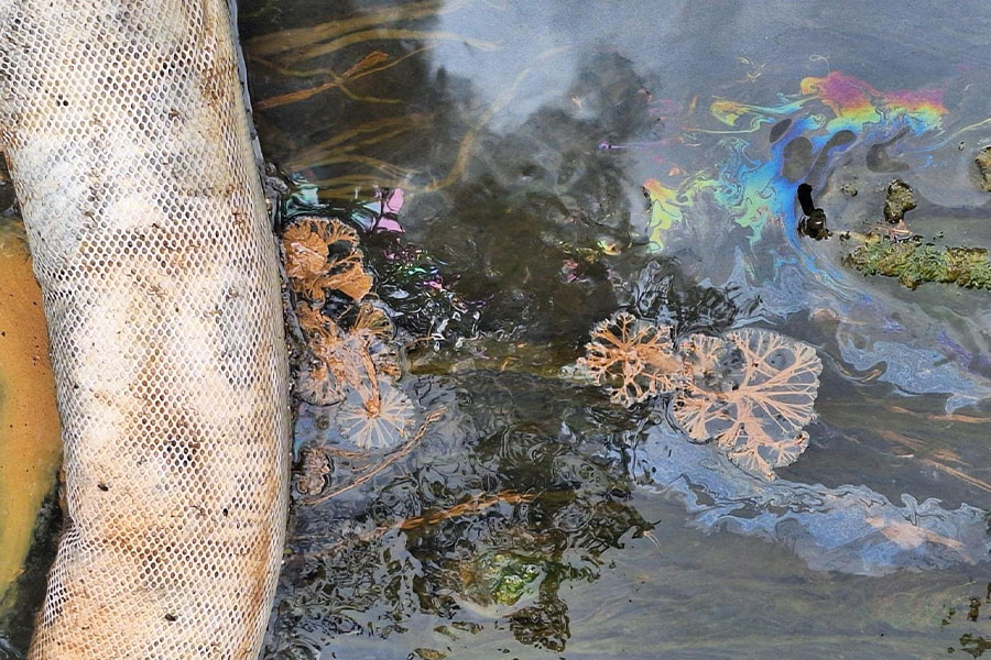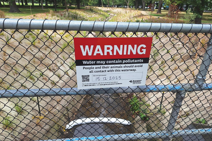 Last month, our incident response team discovered a small oily discharge in Addington Brook, visible from the southwest corner of Hagley Park. Testing confirmed the substance was Total Petroleum Hydrocarbons – the same stuff found in engine oil. Right now, a boom and oil-absorbing pads are in place to contain discharge and protect the environment.